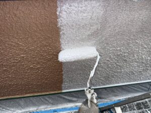 今回はサイディング部分は、下地処理後、下塗り→中塗り→上塗り→上塗りの計3回塗りで仕上げていきます。