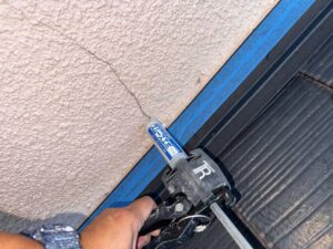 まずは外壁のクラックの部分を塗装前に補修をしていきます!