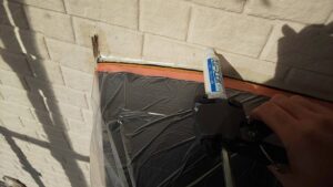 外壁のクラックの部分は塗装前に補修をしていきます!