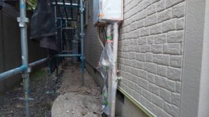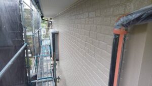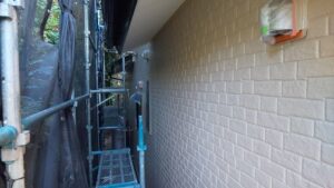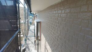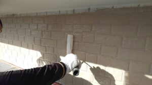 今回はクラック補修などの下地処理後、下塗り→中塗り→上塗りの計3回塗りで仕上げていきます。