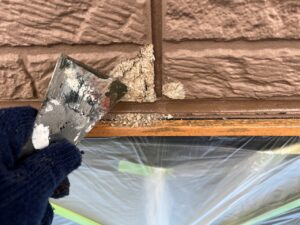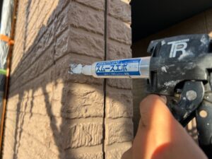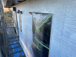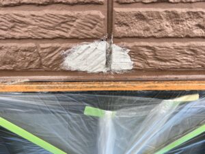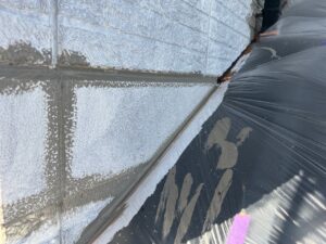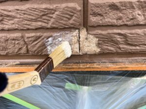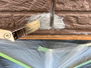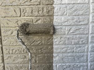 外壁の模様が違う部分でお色を変えて塗装していきます(*^^*)
