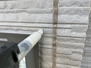 塗装前にまず外壁のクラック補修を行います(`・ω・´)