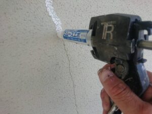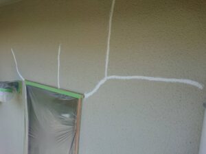 塗装前にまず外壁のクラック補修と外壁補修を行います(`・ω・´)