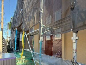今回はクラック補修などの下地処理後、下塗り→中塗り→上塗りの計3回塗りで仕上げていきます。