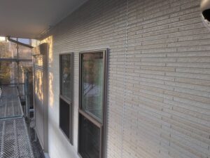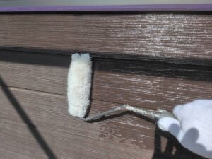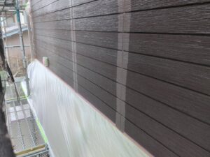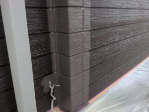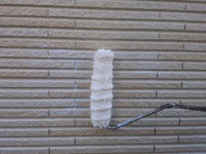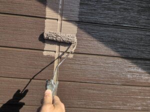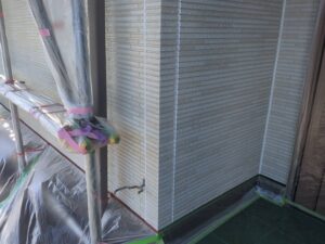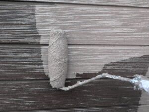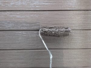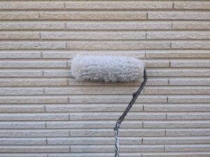 今回はクラック補修などの下地処理後、下塗り→目地塗装→中塗り→上塗りで仕上げていきます。