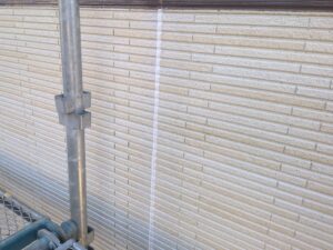 外壁のクラックの部分は塗装前に補修をしていきます!(塗装前に高圧洗浄は完了済です◎)