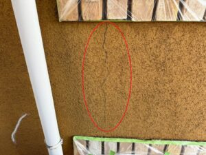 外壁のクラックの部分は塗装前に補修をしていきます!(塗装前に高圧洗浄は完了済です◎)