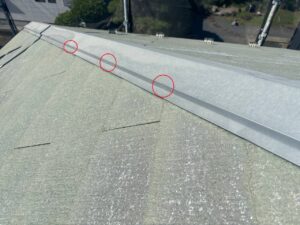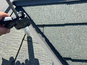 屋根材を元ある場所に戻してコーキングにて補修しました。