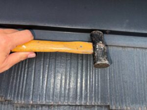 屋根棟の釘を打ち直してコーキングで留めます。