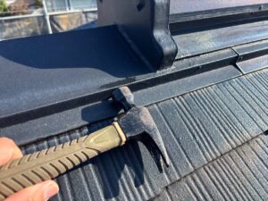 屋根棟の釘を打ち直してコーキングで留めます。