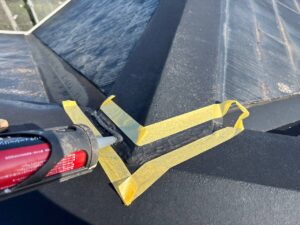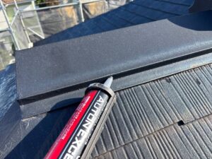 屋根板金部分のコーキングも増し打ちしていきます。
