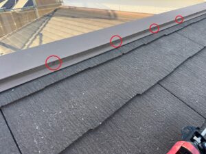 タスペーサーを入れていないと塗料で屋根の隙間が塞がってしまい屋根内部に排出できなかった水が溜まってしまい屋根材の劣化や雨漏りを引き起こします。