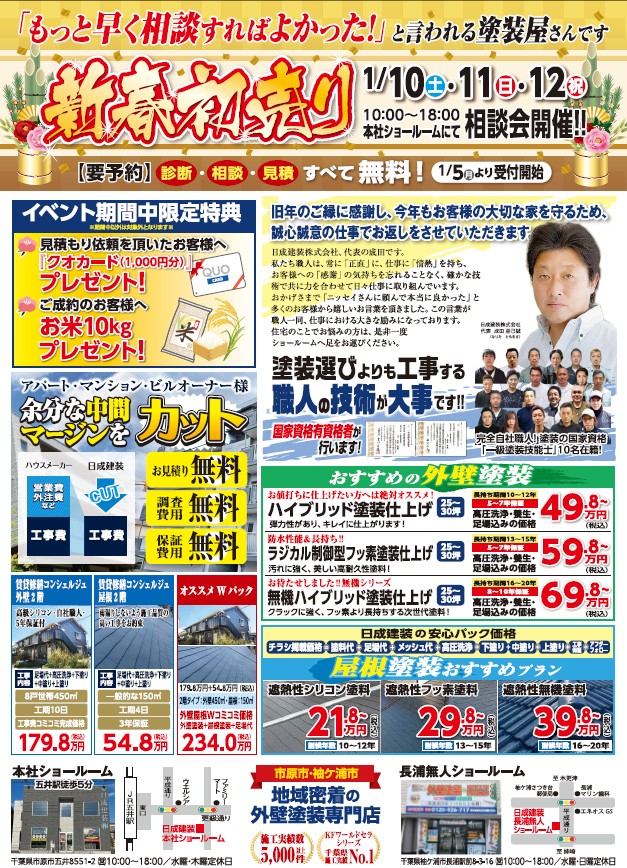 【新春初売り】外壁・屋根塗装 無料相談会開催!(1/10~1/12)