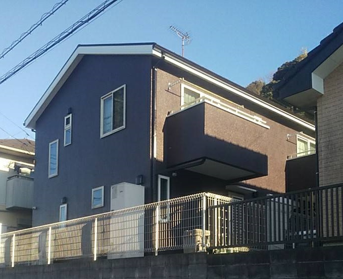 外壁:KFケミカル|KFワールドセラグランツW 色番号|SC-44 外壁クリヤー仕上げ:KFケミカル|KFワールドセラグランツクリヤー 屋根:KFケミカル:KFワールドセラルーフCool 色番号|CC-102 付帯:KFケミカル|KFワールドセラグランツ 色番号|SC-04・CC-102 |