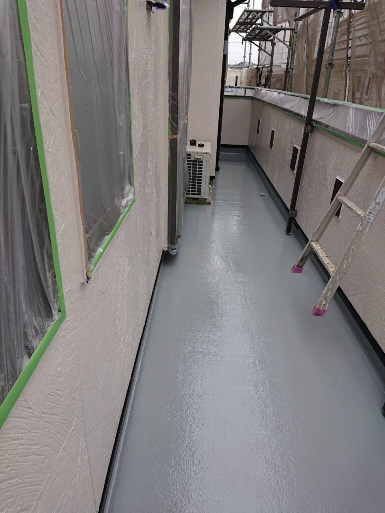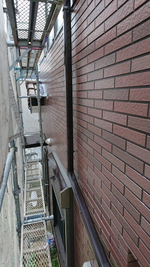 外壁塗装 コーキング処理 付帯塗装 (軒天塗装・破風塗装・横樋塗装・縦樋塗装・シャッターBOX塗装・バルコニー塗装(3回塗り)・水切り塗装・外灯塗装・換気扇フード塗装・霧除け塗装・ガスメーターパイプ塗装・エアコンカバー塗装) |