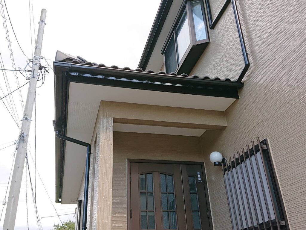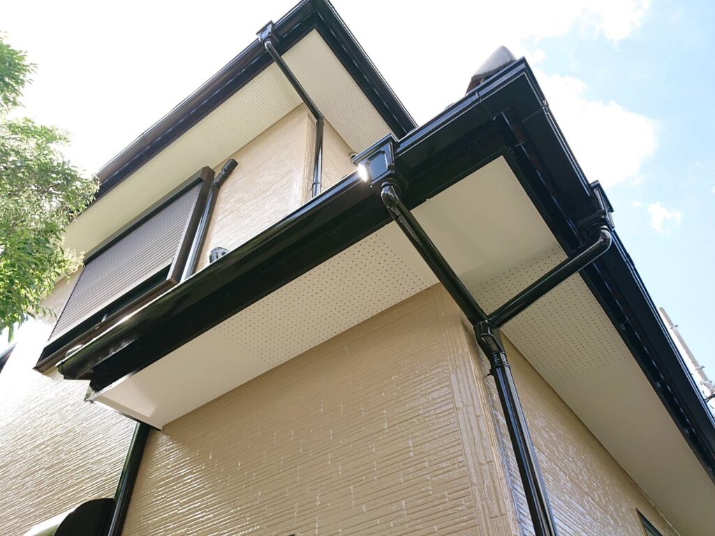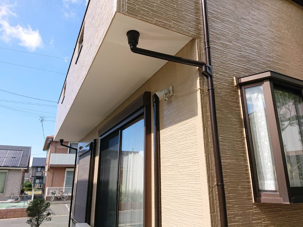 外壁塗装 付帯塗装 (軒天塗装・破風塗装・横樋塗装・縦樋塗装・シャッターBOX塗装・ベランダ塗装(3回塗り)・外灯塗装・霧除け塗装・水切り塗装・換気扇フード塗装・エアコンカバー塗装・勝手口ドア塗装・ガスメーターパイプ塗装・屋根棟釘打ち) |