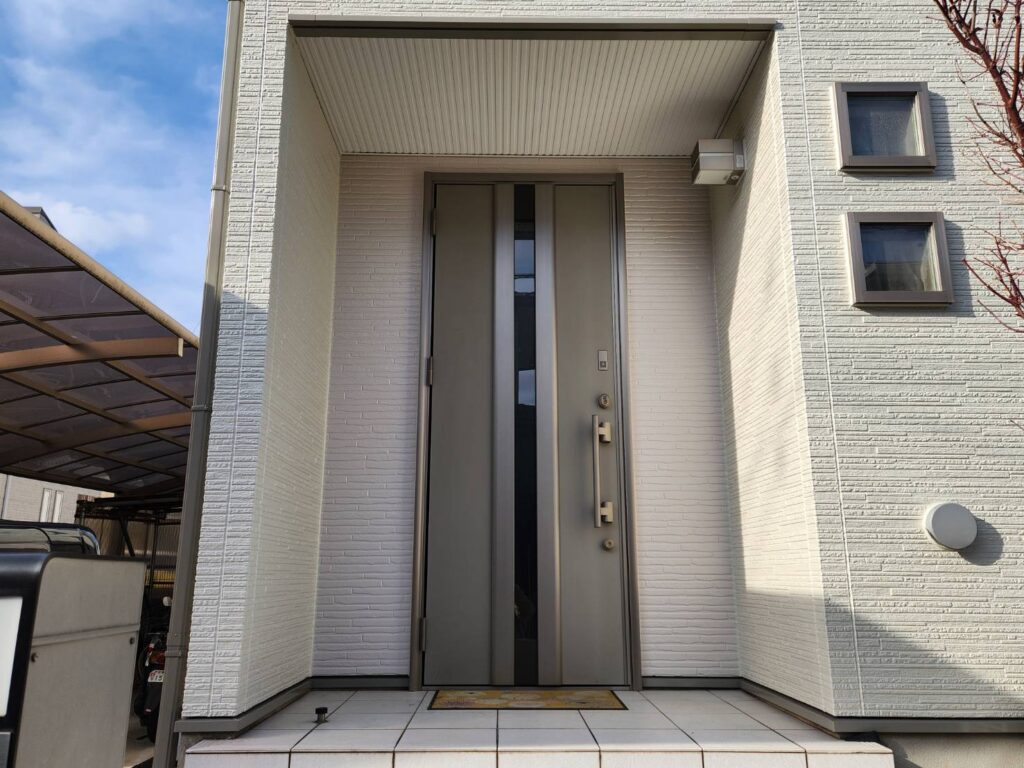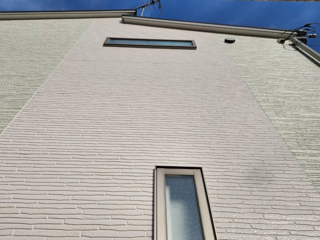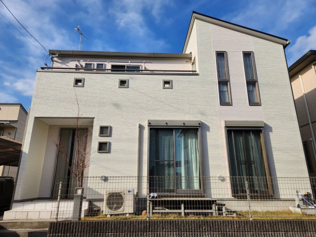 外壁:KFケミカル:KFシェアルドF 色番号|全体:SC-09 一部(縦ライン・玄関面・ベランダ):SC-03 屋根:KFケミカル:KFスーパーフロンルーフ 色番号|SC-44 付帯:KFケミカル|KFスーパーフロングランツ 色番号|SC-24 |