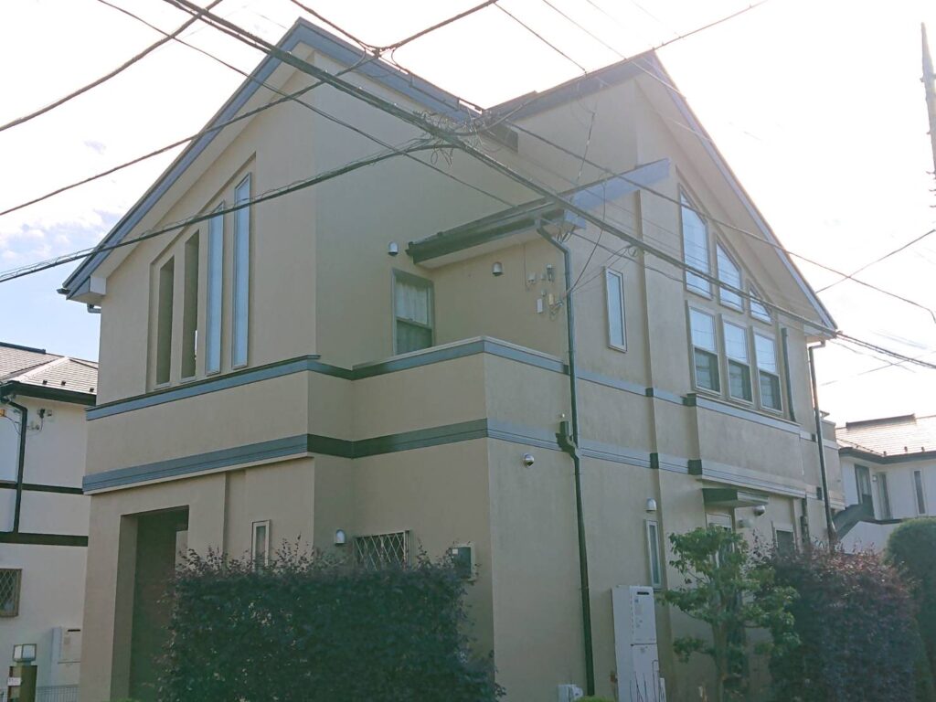 外壁:KFケミカル:KFシェアルドSi 色番号|全体:SC-22 屋根:KFケミカル:KFスーパーマルチSiⅡ 色番号|SC-44 付帯:KFケミカル|KFスーパーマルチSiⅡ 色番号|SC-102 |