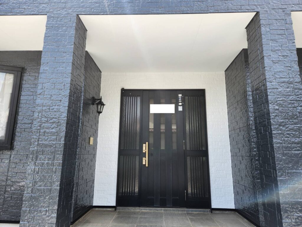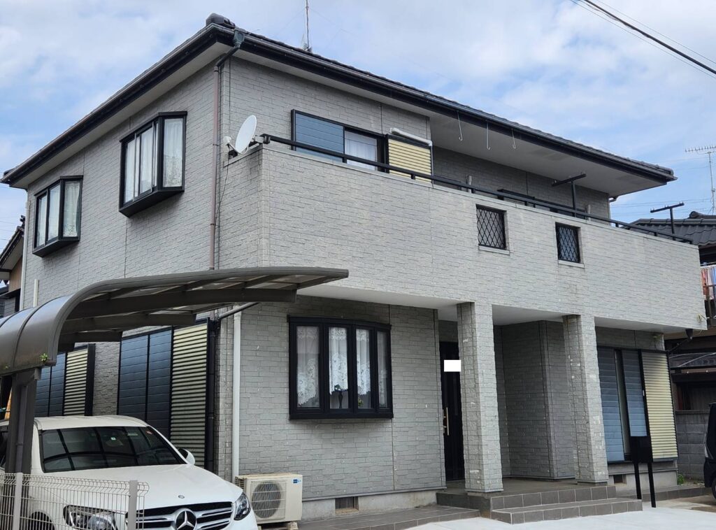 外壁:KFケミカル|KFワールドセラグランツW 色番号|全体:SC-47 玄関部分:SC-04< 付帯:KFケミカル|KFワールドセラグランツ 色番号|CC-107 |