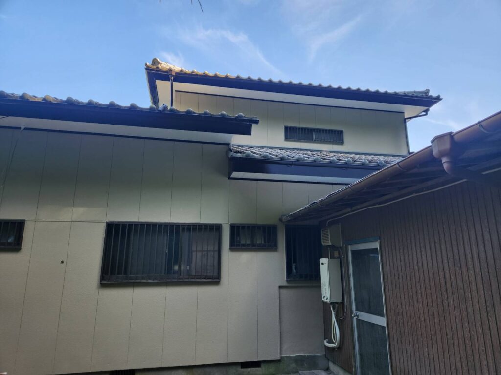 外壁:KFケミカル:KFシェアルドF 色番号|SC-23 コーキング|オート化学工業:超耐シーラーTF2000 トタン屋根:KFケミカル:KFスーパーマルチSiⅡ 色番号|SC-25 付帯:KFケミカル|KFスーパーフロングランツ 色番号|CC-102(雨戸:SC-06) |
