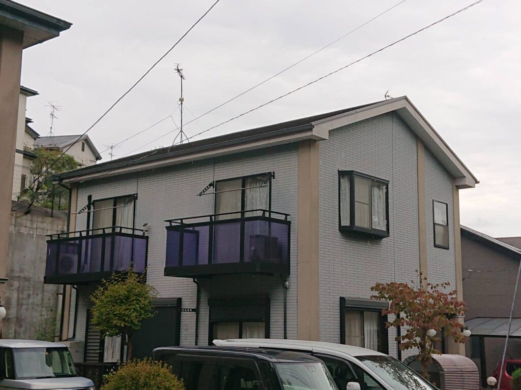 屋根:KFケミカル:KFワールドセラルーフCool 色番号|SC-44 外壁:KFケミカル|KFワールドセラグランツW 色番号|目地:SC-23 表面:SC-34 コーナー部分:SC-44 付帯:KFケミカル|KFワールドセラグランツ 色番号|CC-107 |