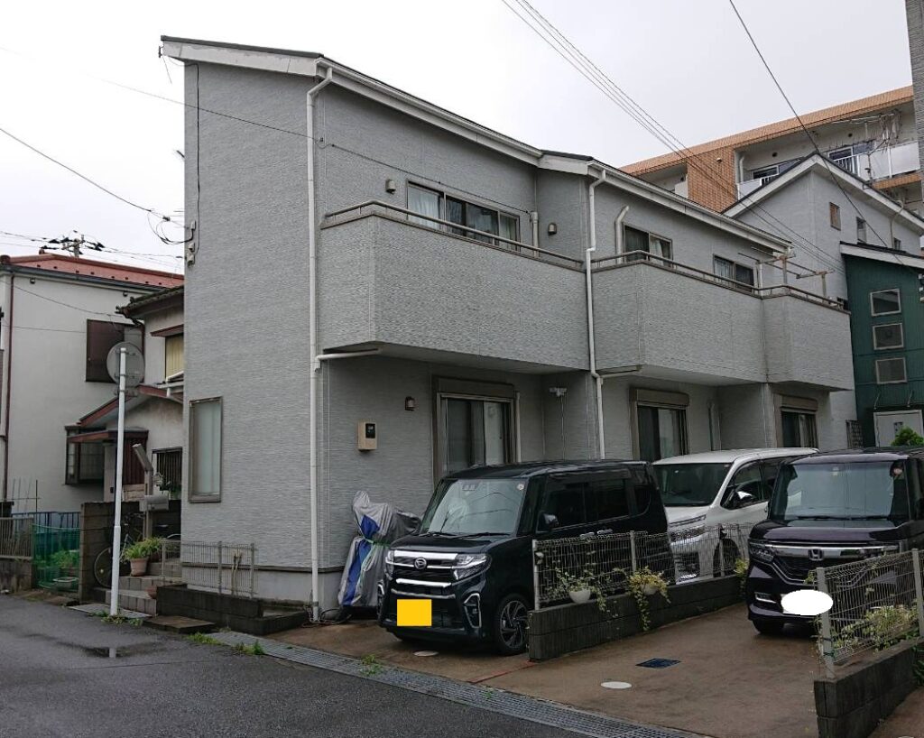 外壁:KFケミカル|KFワールドセラグランツW 色番号|全体:SC-47 一部:SC-09 付帯:KFケミカル|KFワールドセラグランツ 色番号|SC-04(シャッターBOX:SC-24) |