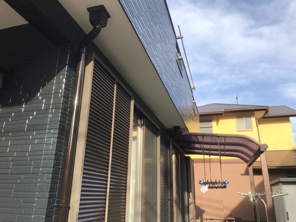 外壁塗装 付帯塗装 (軒天塗装・破風塗装・横樋塗装・縦樋塗装・雨戸塗装・シャッターBOX塗装・ベランダ塗装・エアコンカバー塗装・換気扇フード塗装・水切り塗装・霧除け塗装・ガスメーターパイプ塗装・エアコンホーステープ巻き) |