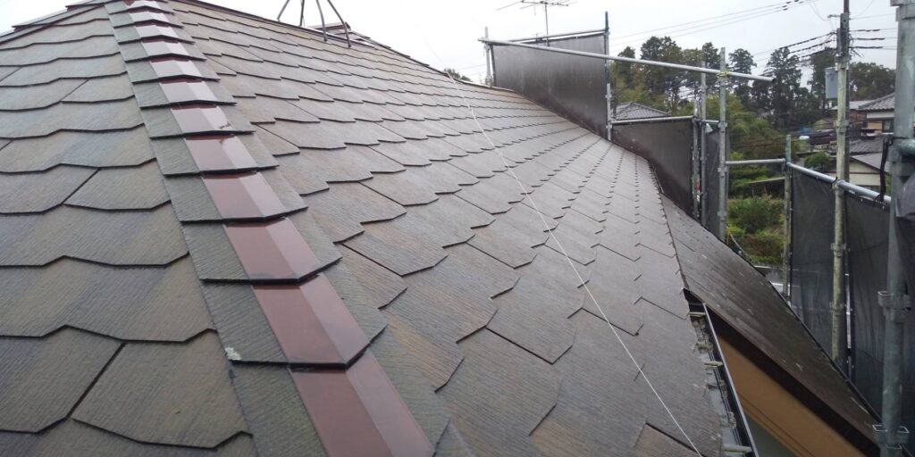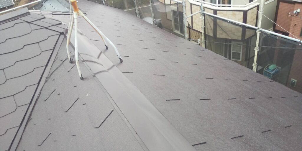 外壁:KFケミカル:KFワールドセラグランツ 色番号|SC-16 コーキング:オート化学工業|オートンイクシード 屋根:KFケミカル:KFワールドセラルーフ遮熱 色番号|SC-44 付帯:KFケミカル|KFワールドセラグランツ 色番号|CC-102 |