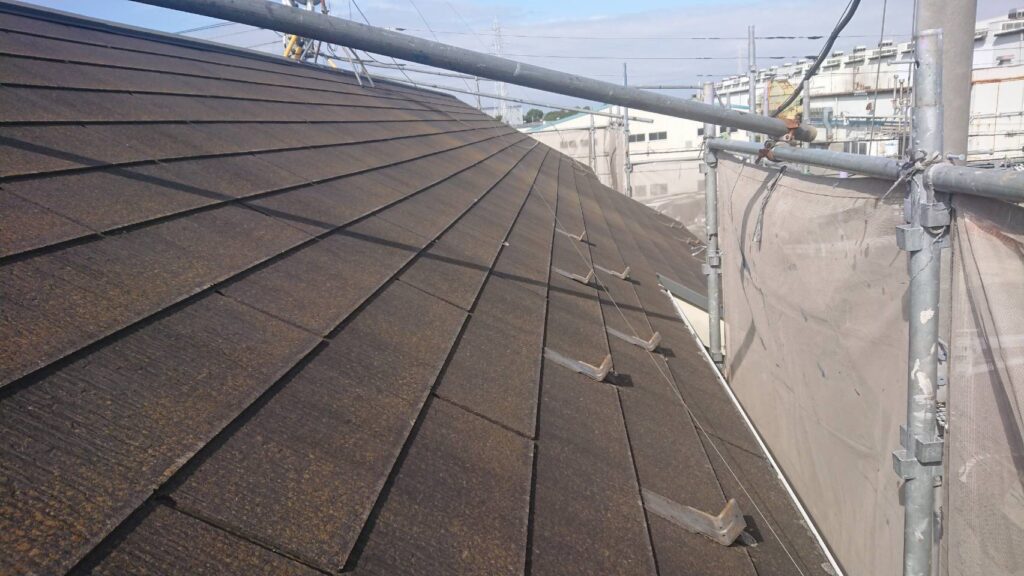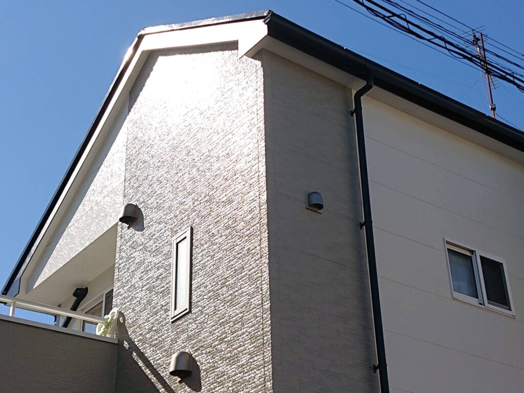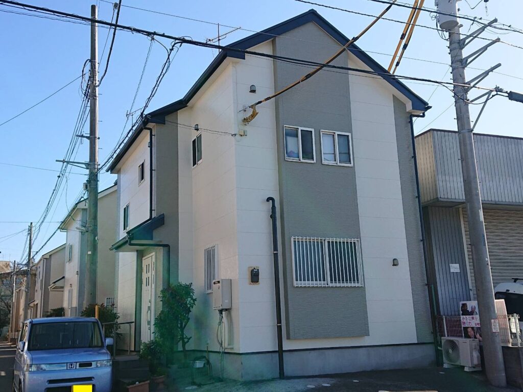 外壁:KFケミカル:KFワールドセラグランツ 色番号|全体:SC-09 コーナー:SC-24 コーキング:オート化学工業|オートンイクシード 屋根:KFケミカル:KFワールドセラルーフ遮熱 色番号|SC-50 付帯:KFケミカル|KFワールドセラグランツ 色番号|CC-107 |