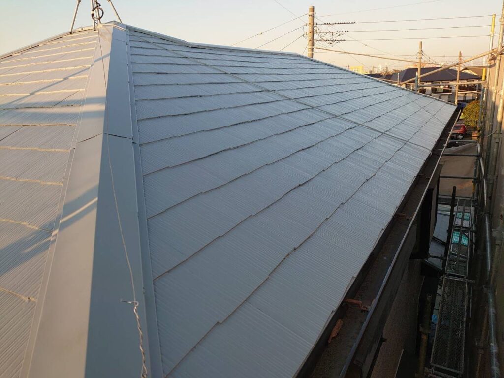 外壁:KFケミカル:KFシェアルドSi 色番号|SC-10 コーキング:POSシール 屋根:KFケミカル:KFスーパーフロンルーフ遮熱 色番号|SC-37 付帯:KFケミカル|KFスーパーマルチSiⅡ 色番号|CC-107 |