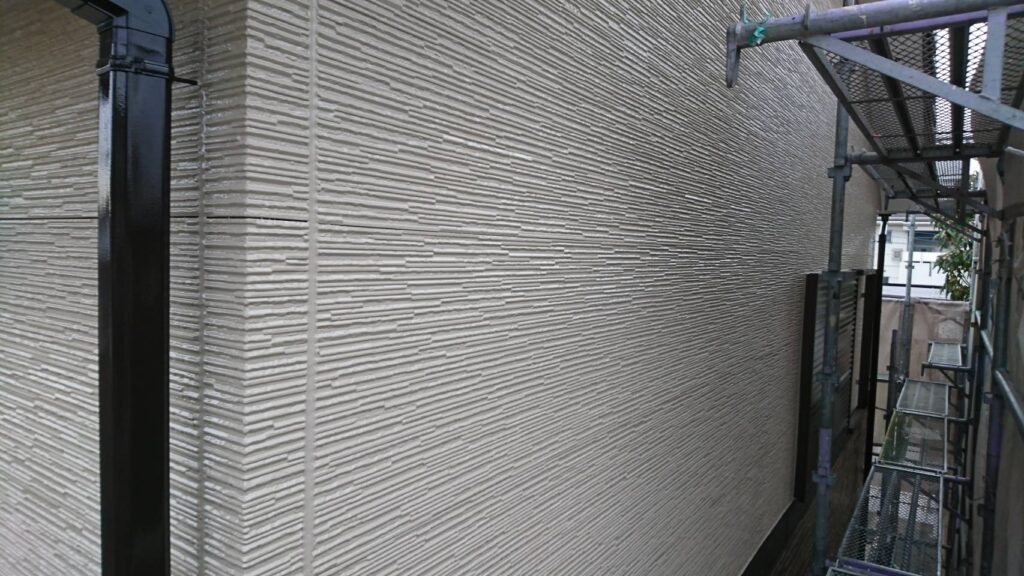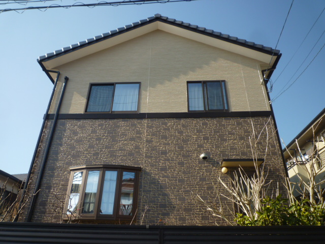 外壁:KFケミカル:KFワールドセラグランツ 色番号|上部:SC-23 目地:SC-22 全体:SC-34 コーキング:オート化学工業|オートンイクシード 付帯:KFケミカル|KFワールドセラグランツ 色番号|CC-102 |